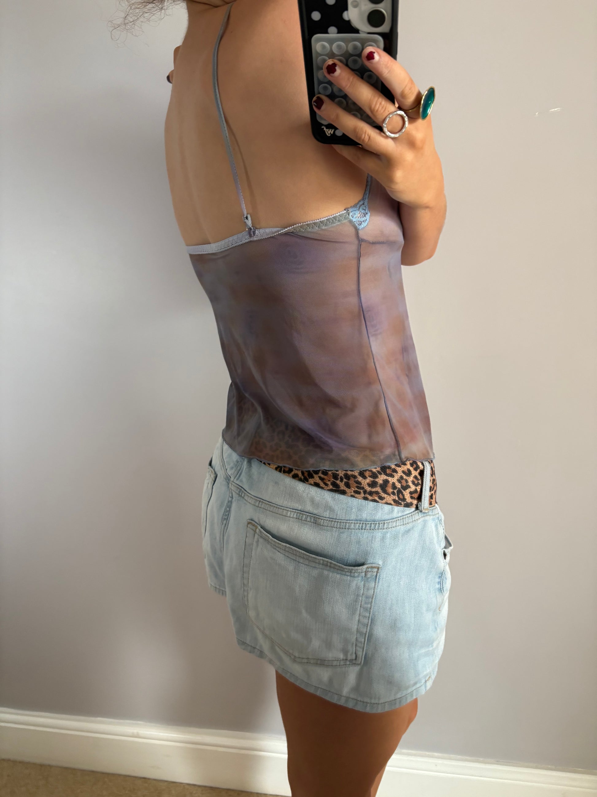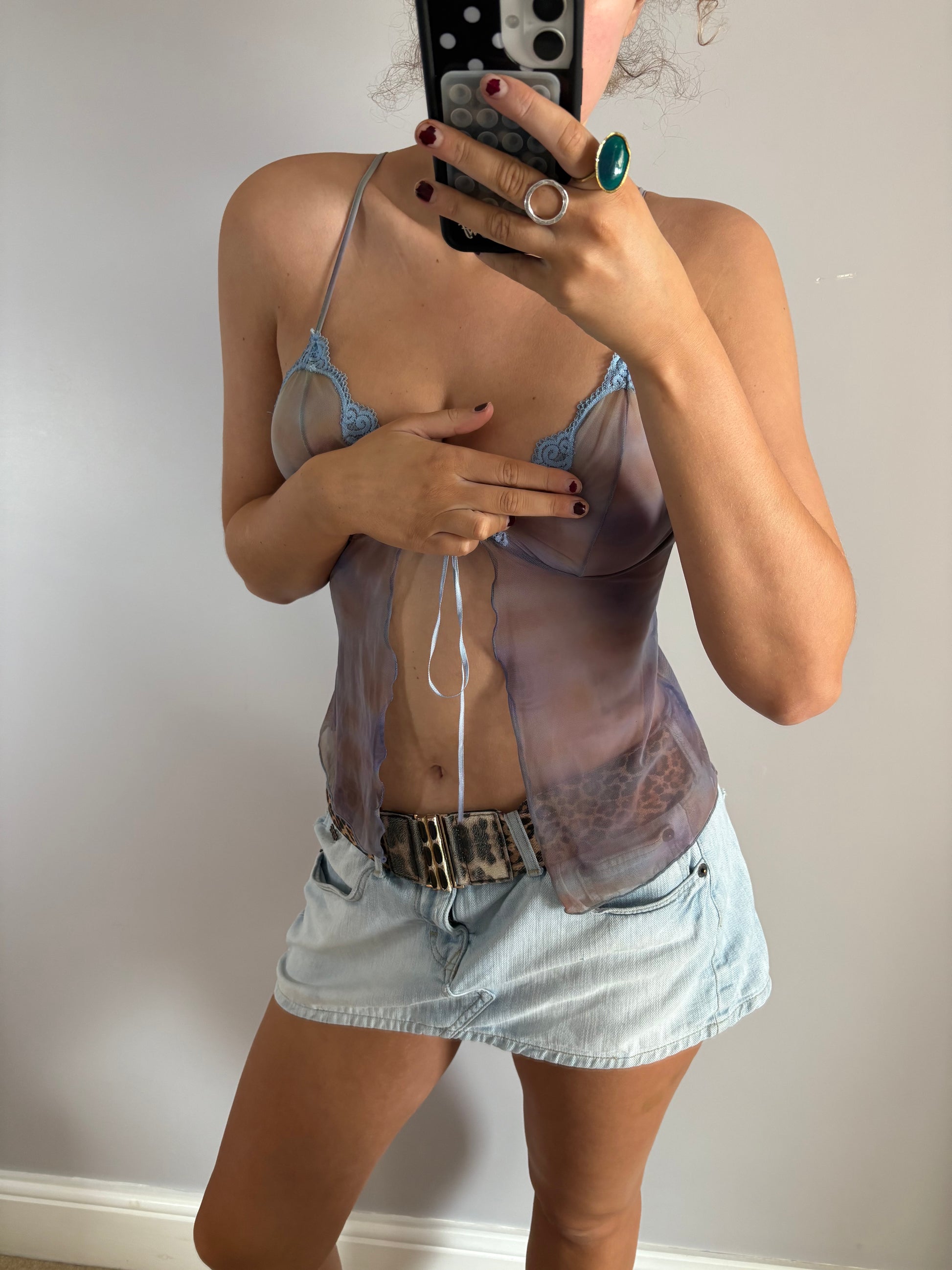 Y2K blue mesh tie up cami top