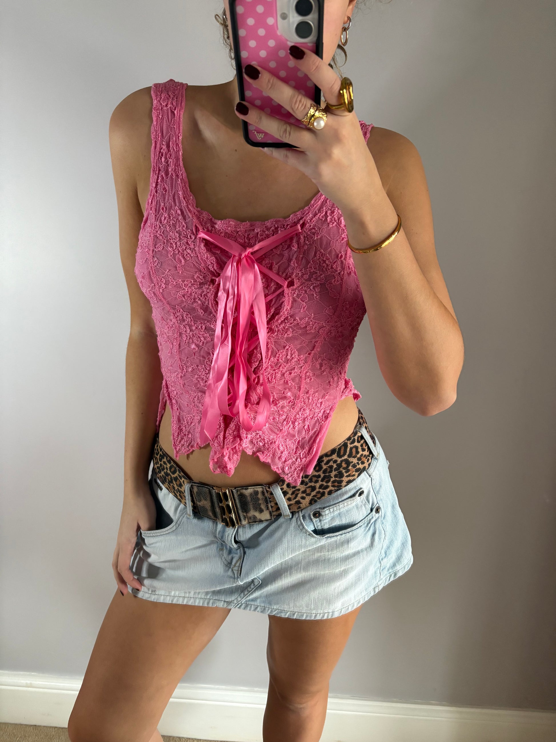 pink laced ribbon cami top