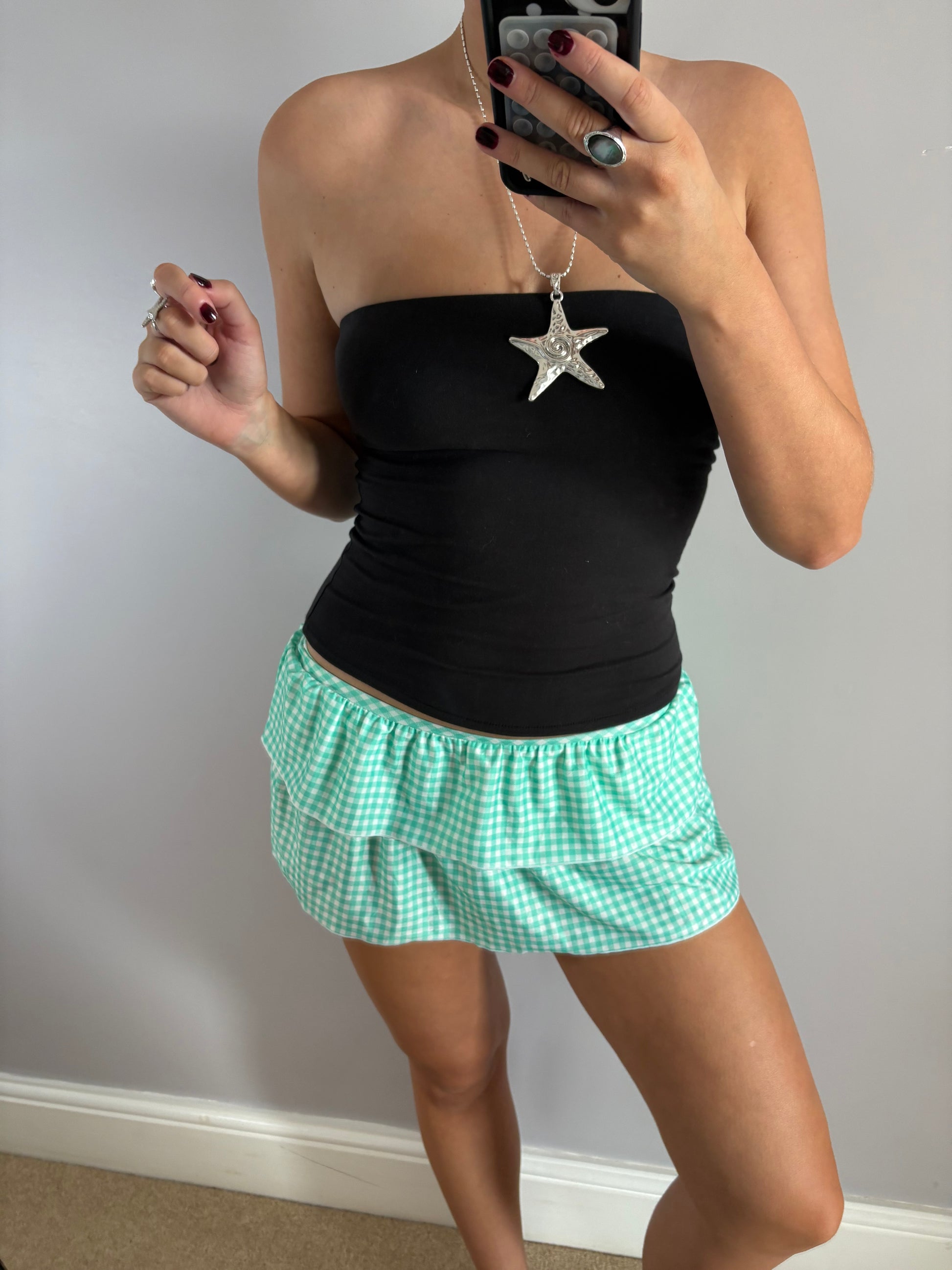 y2k green checkered mini skirt
