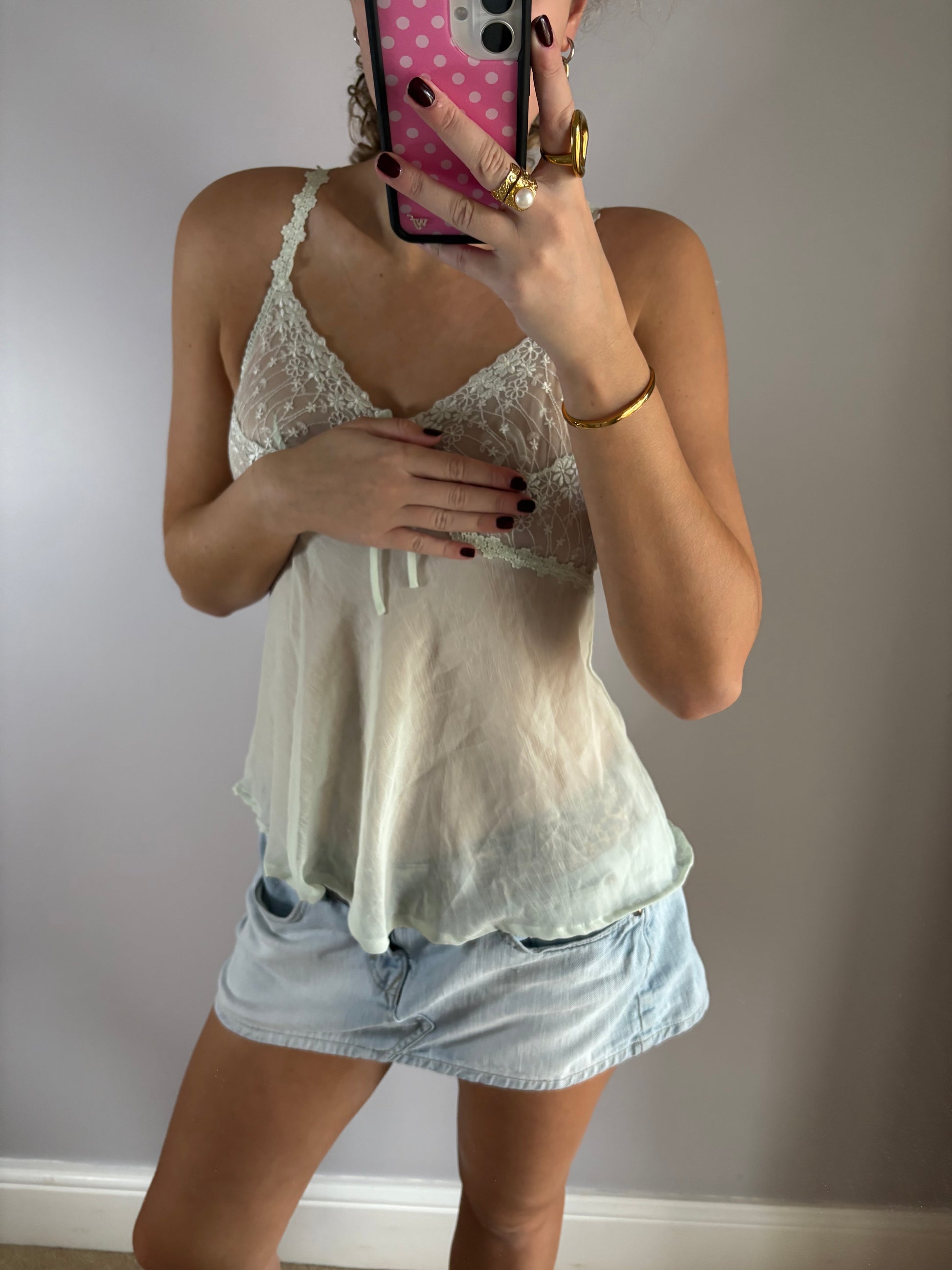 lime green mesh laced cami