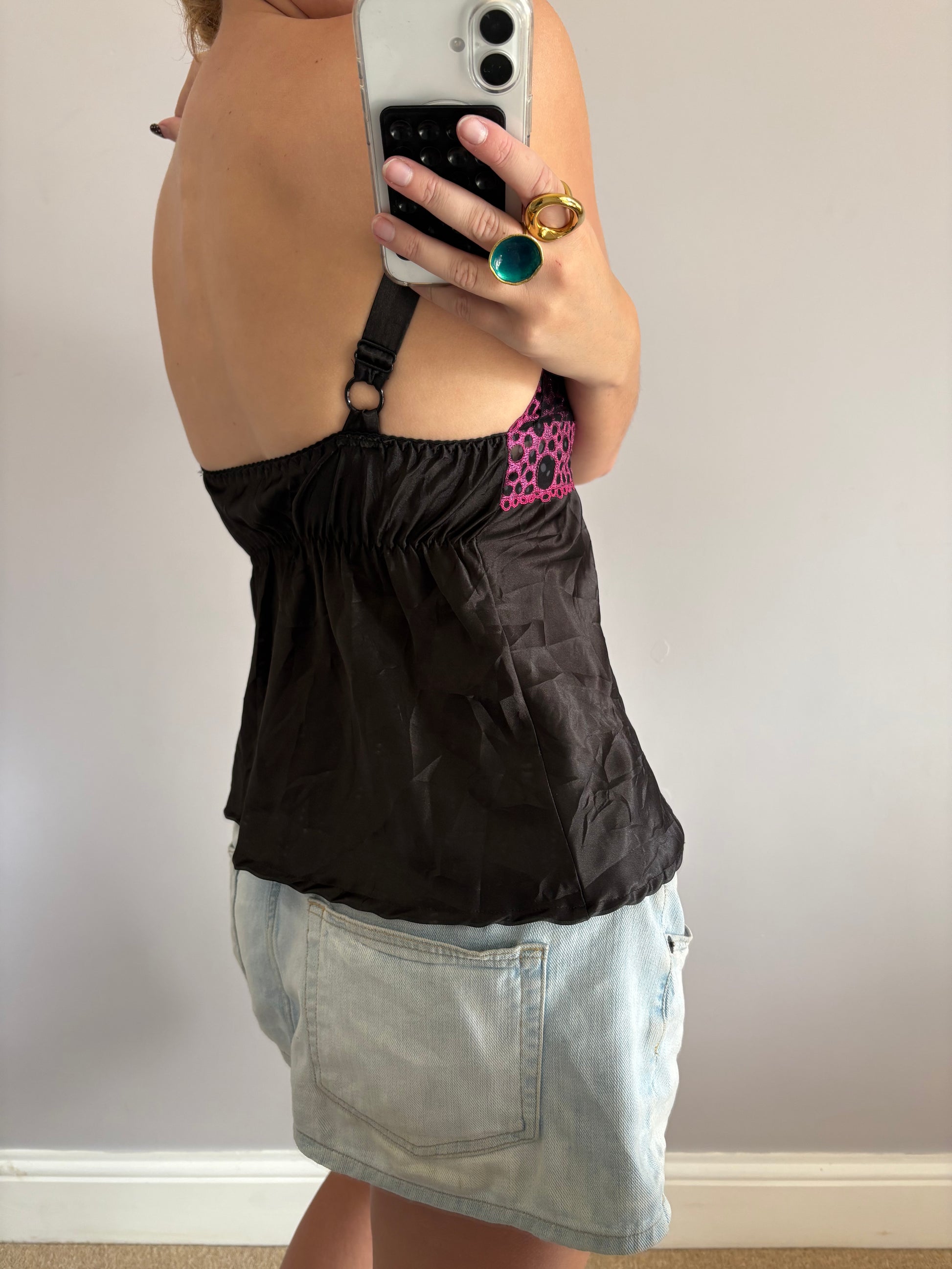 vintage black and pink flower mesh top