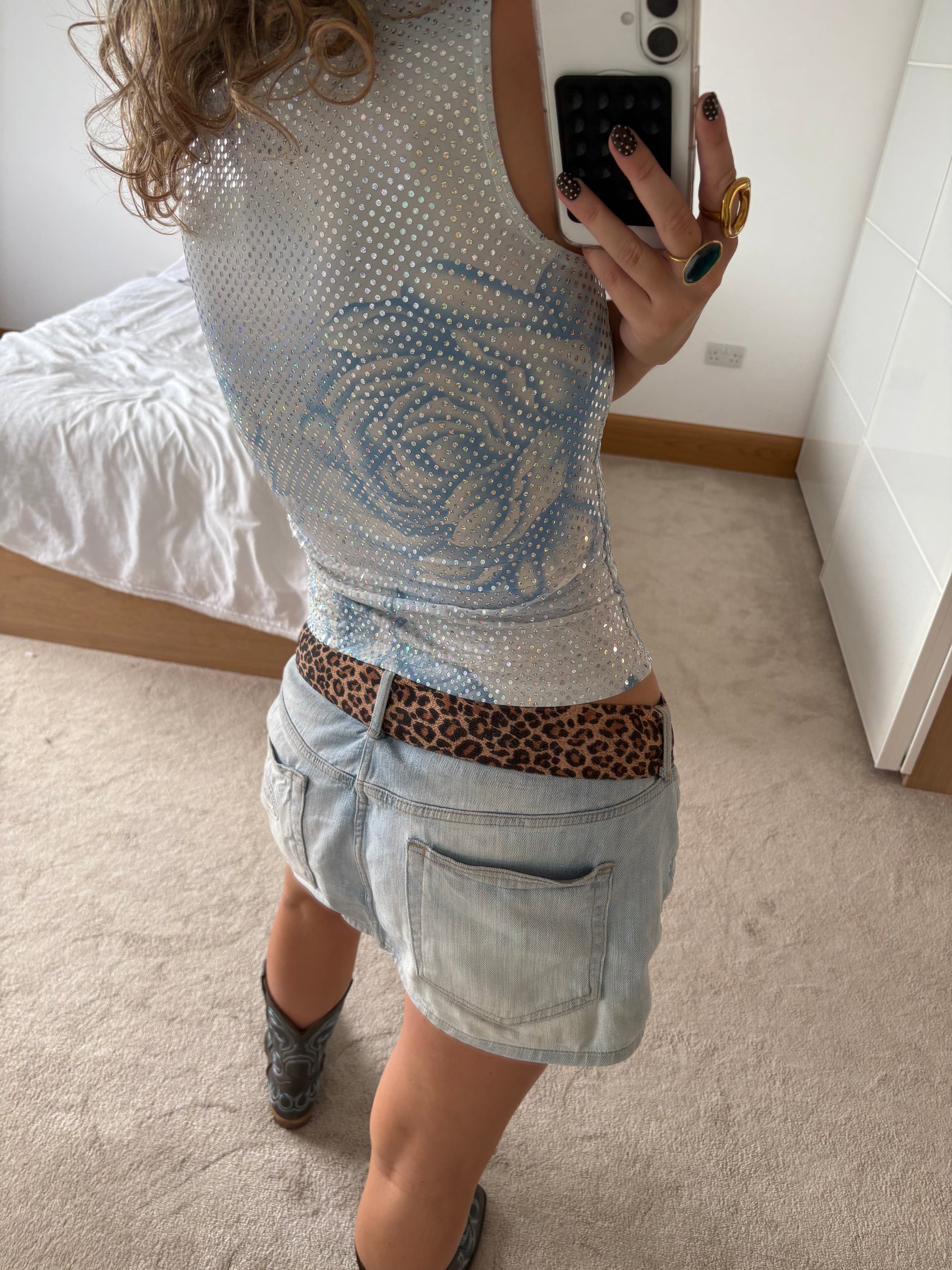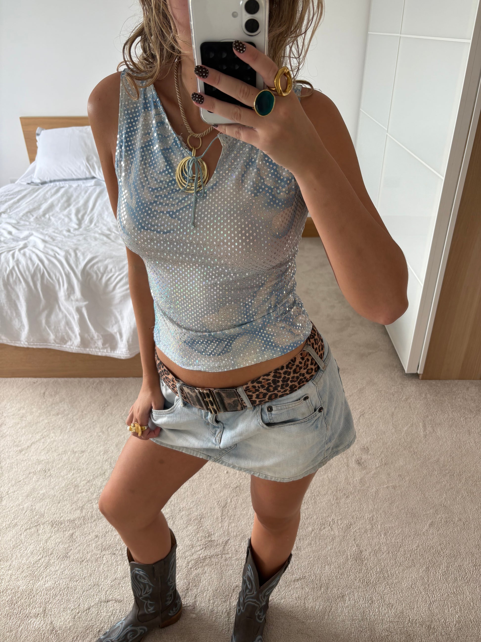 blue and silver glittery top