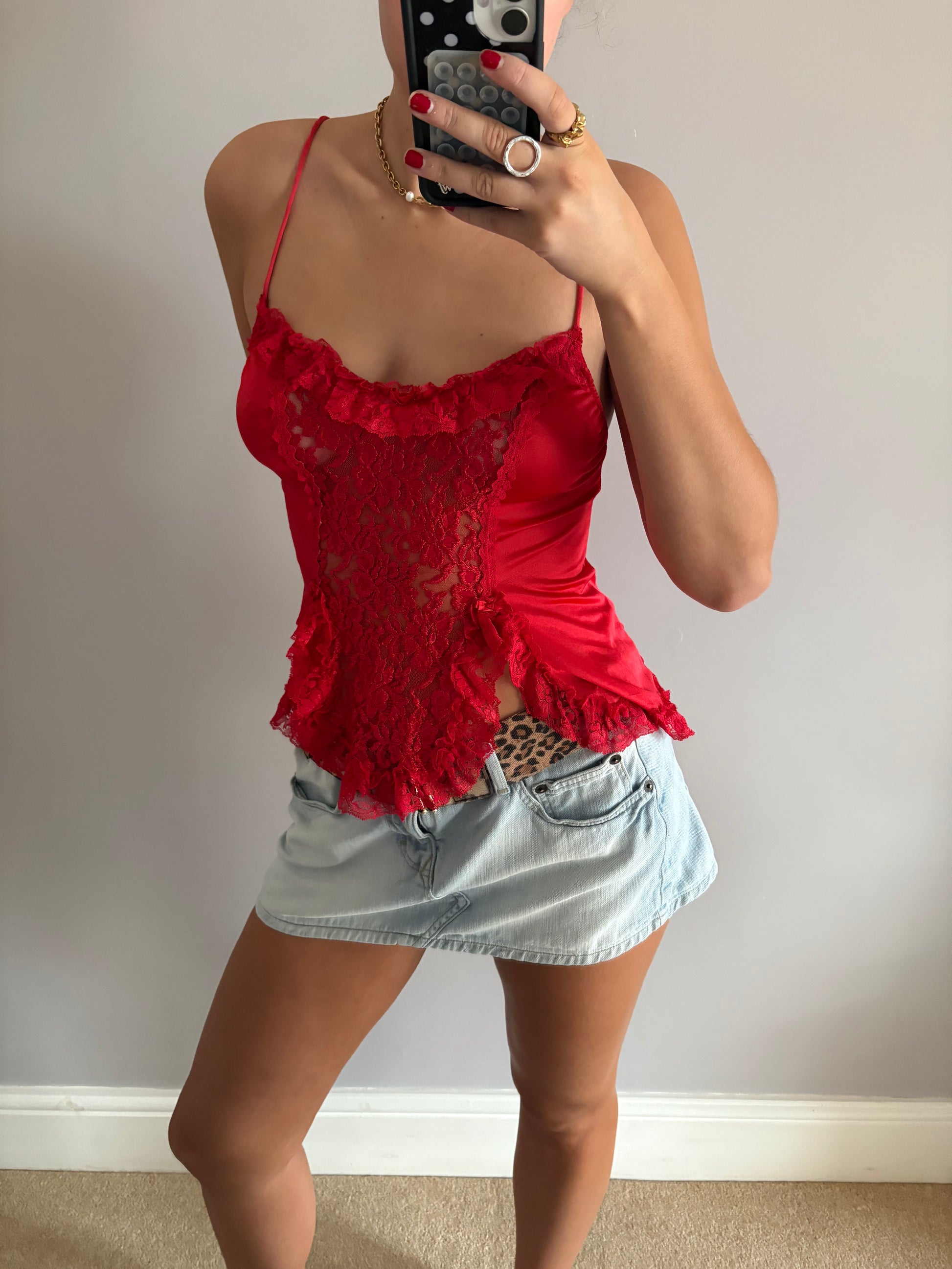 red laced cami