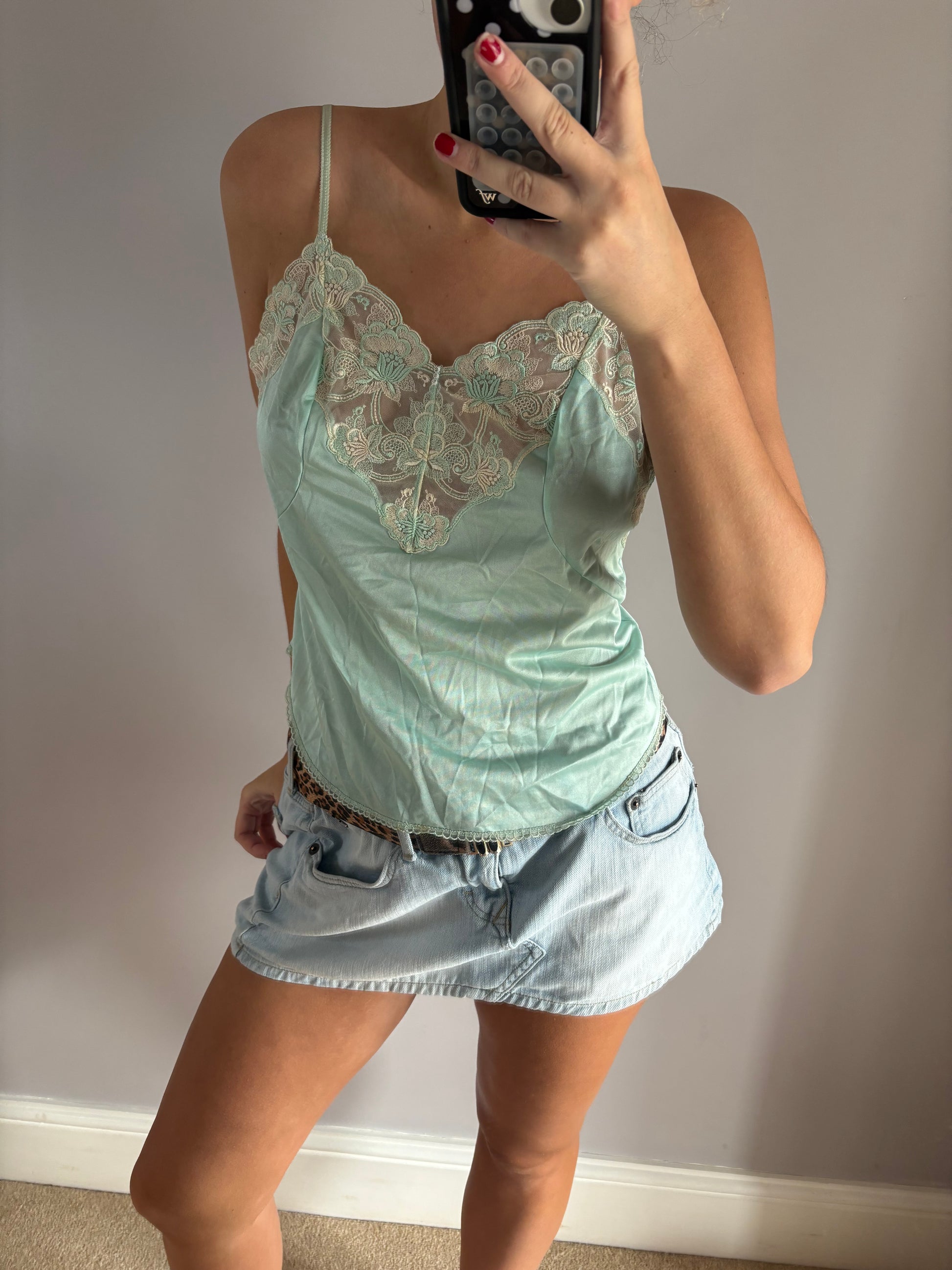 mint green laced cami top