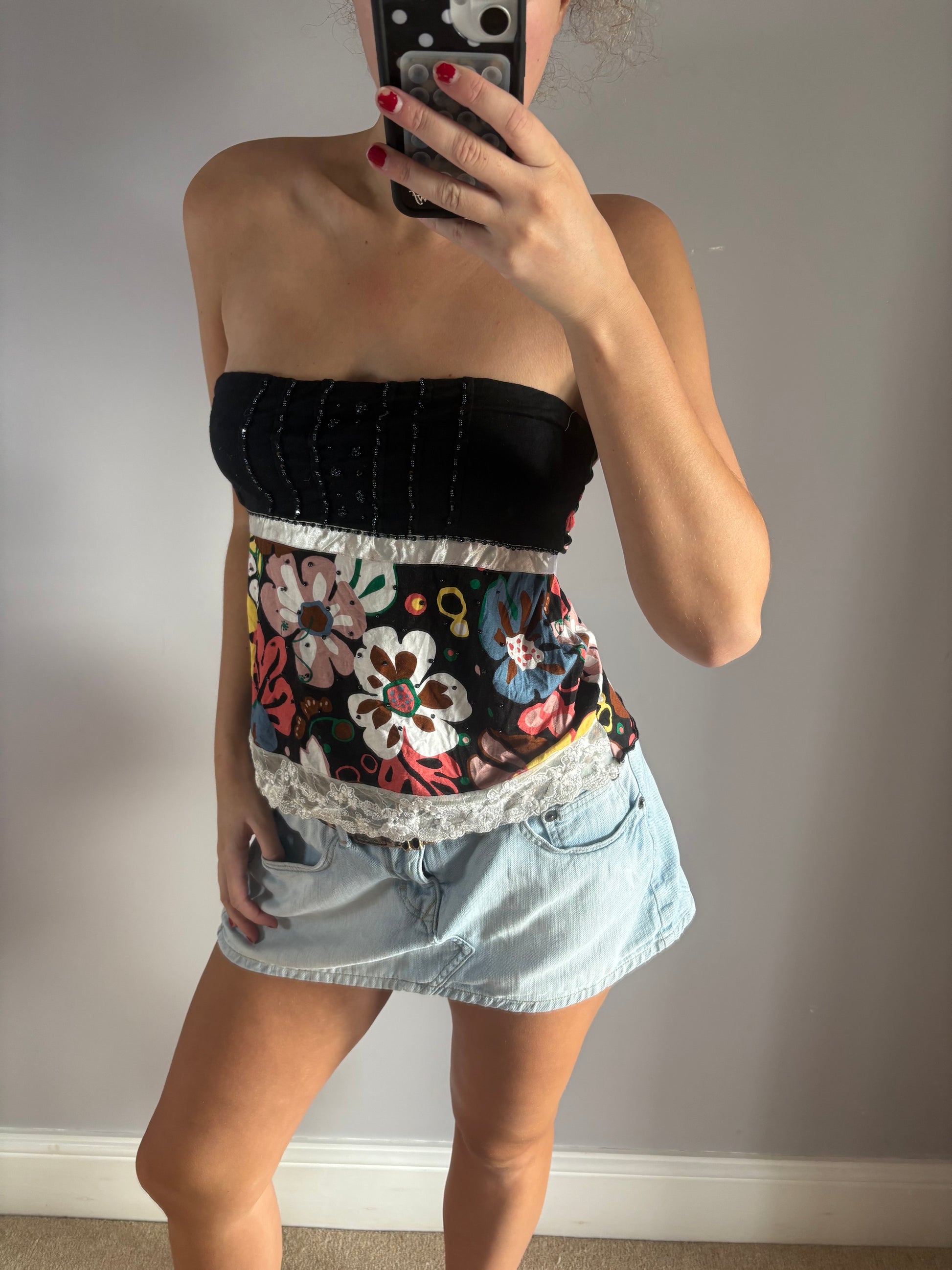 black flower vintage bandeau top