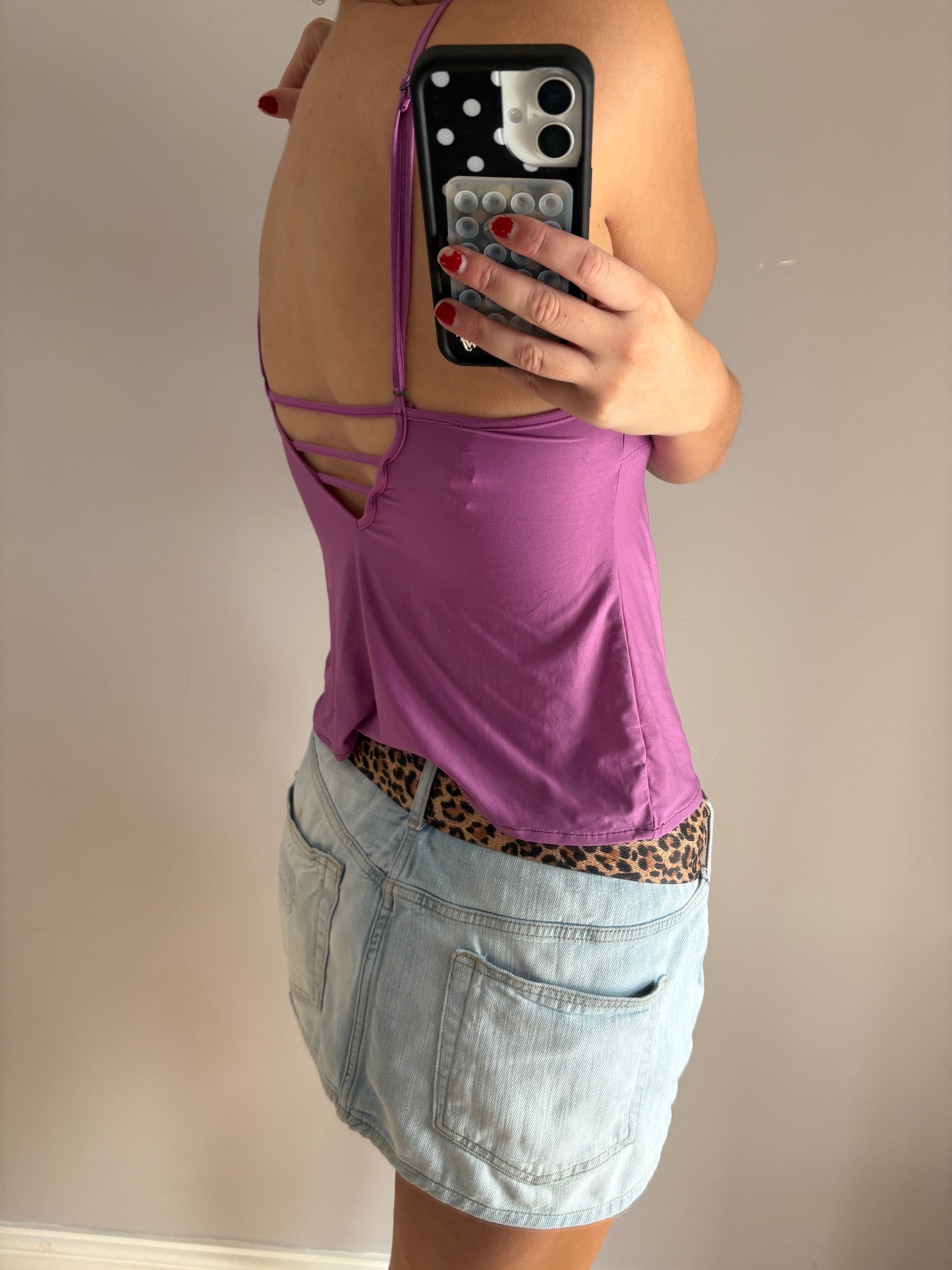 purple and black laced cami top